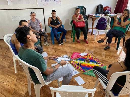 Esta construcción colectiva refleja un dialogo intergeneracional, protagonizado por hombres jóvenes y mujeres adultas mayores. Pudimos observar la facilidad en el relacionamiento con el otro u otra que no conocía pero que tenía intereses similares desde las actividades artísticas en la zona.