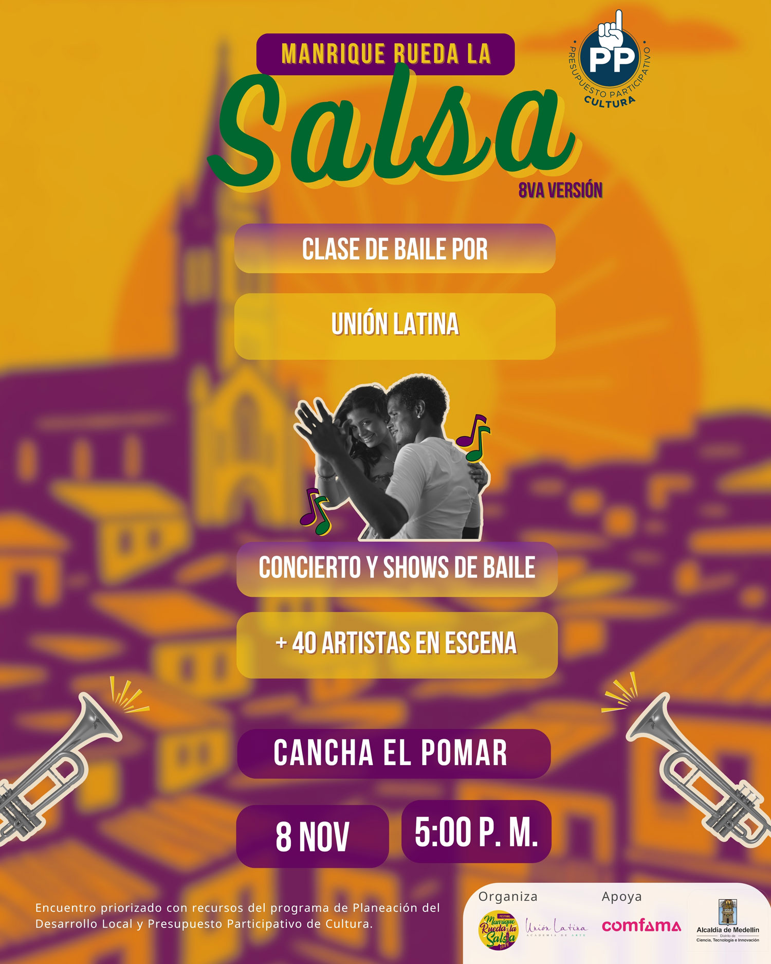 El próximo sábado 8 de noviembre, desde las 5:00 p. m., la cancha El Pomar de Manrique se convertirá en una gran pista de baile para celebrar Manrique Rueda la Salsa, un evento gratuito que invita a la ciudad a reencontrarse con uno de los géneros más representativos de su identidad musical: la salsa.