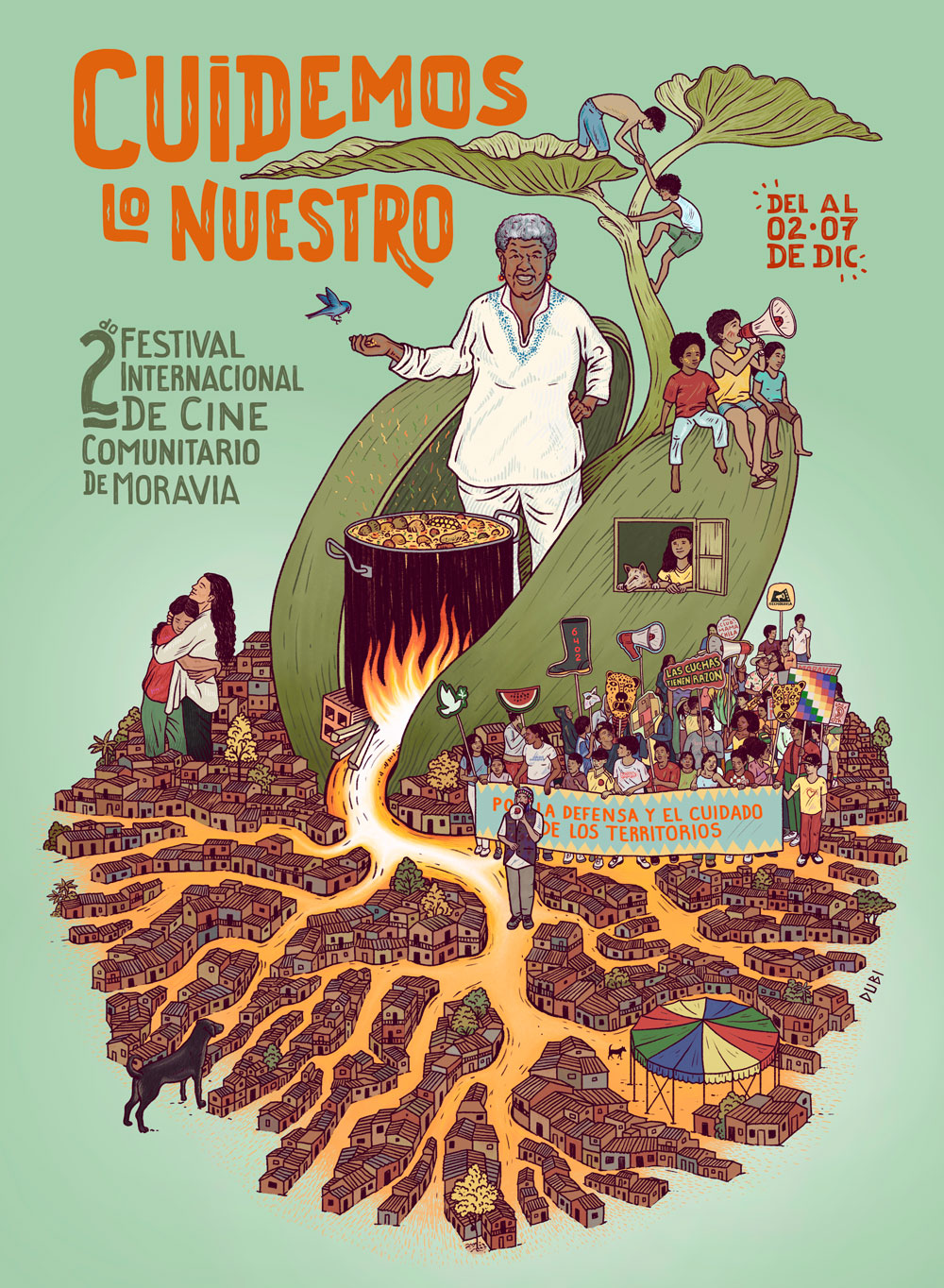 Cuidar el barrio, cuidar las memorias, cuidar el tejido comunitario, cuidar la naturaleza, cuidar las prácticas que sostienen la vida. Todo eso aparece en la programación: cortos sobre personajes simbólicos de Moravia, documentales como “Si la escombrera hablara”, películas latinoamericanas, animaciones comunitarias y muestras de procesos audiovisuales locales.